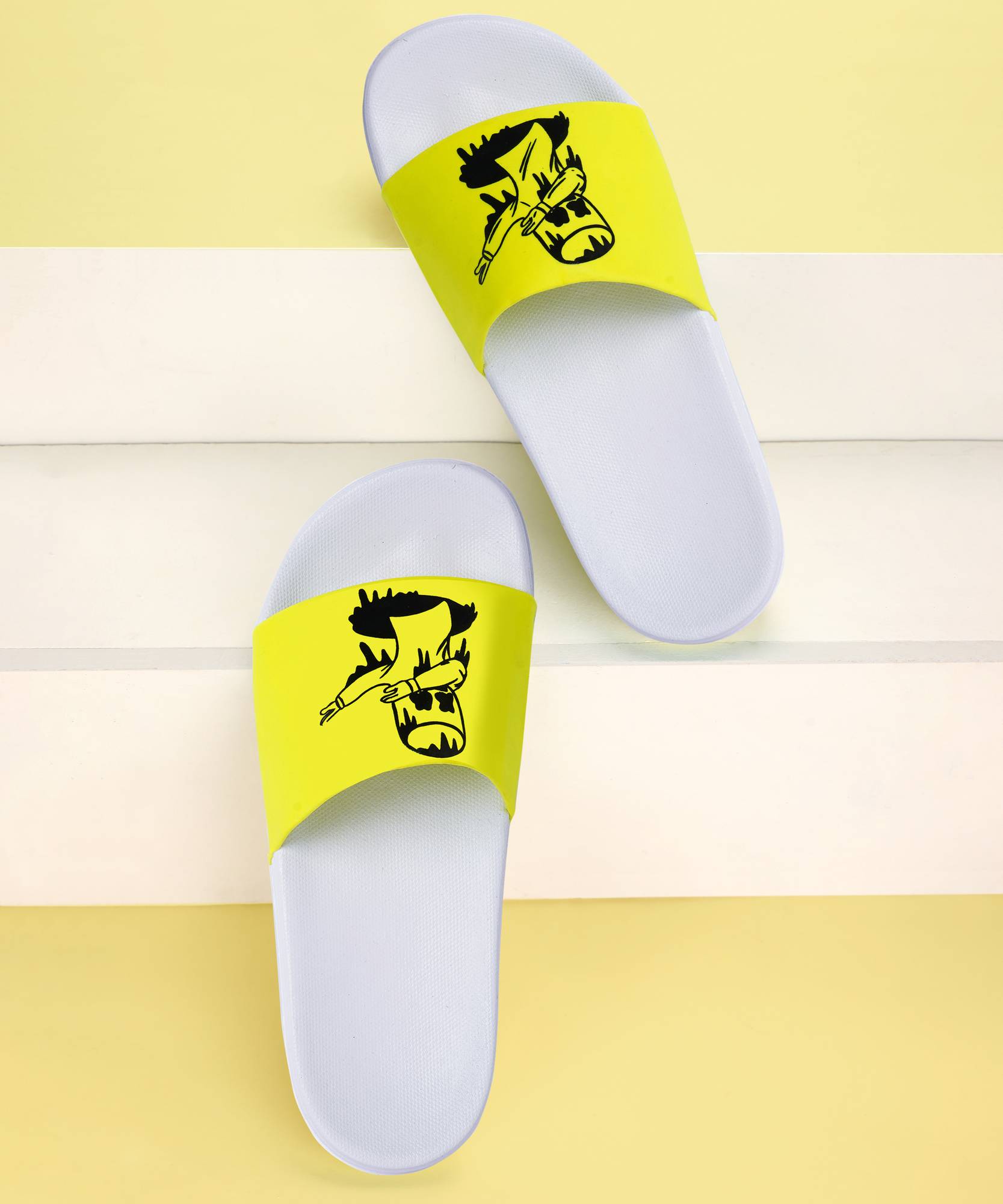Foot Print Men Slides (Yellow, White , 8)
