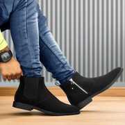 Upgrade your style with FOOTOGY Vegan Leather Suede Chelsea Boots, crafted for comfort, durability, and modern fashion. Designed with a side zipper, cushioned insole, and durable TPR sole, these boots are perfect for formal, casual, and party wear. A smart, sustainable choice for every wardrobe.