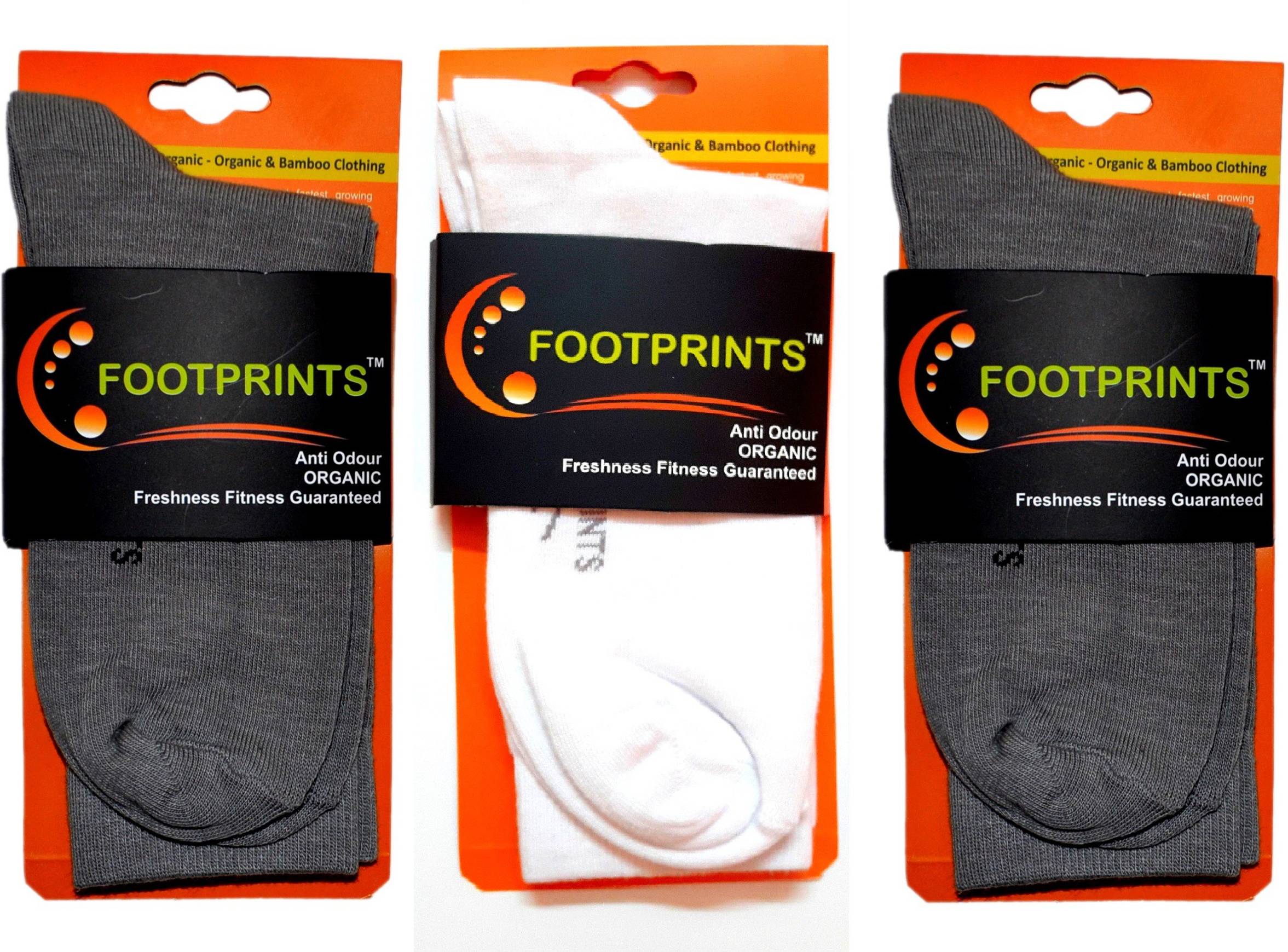 Give your day a perfect start with Footprints Organic Odour free super soft Formal work socks with Superior Grip - Excellent Elastic Fit Our Anti Odour, Anti Bacterial range of organic & Bamboo socks keep your feet fresh and dry all day. Blended with Fibres which are naturally antimicrobial, it prevents bacteria and fungus from cultivating on it, hence keeping it odour free. Socks perform hard labour every day: long working hours, a warm and humid climate, lots of friction – only the best can be good enough. Our socks are made from top-quality organic cotton and bamboo fibre and can withstand great stress. Discover the exceptional quality of our socks for yourself. Once you wear our socks, there will be no doubt you have something special on your feet.