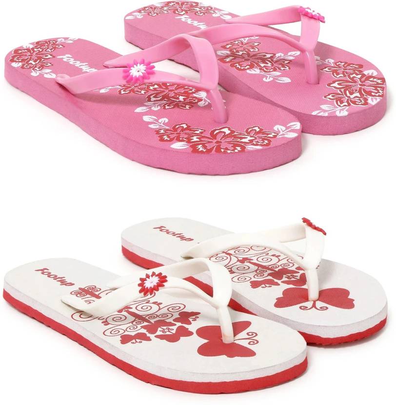 Footup Women Footup 2 Pair Women's Flip Flop|Comfortable|Breathable|Fashionable|Lightweight Slippers (Multicolor , 8)