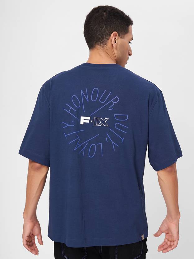 FORCE IX Men Graphic Print Round Neck Cotton Blend Blue T-Shirt