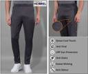 Premium Polyester Fabric, Powered BT Hexarel, live smart, in comfort, Qmax Cool Touch - Conduct body heat efficiently, making the fabric cool to touch and keeping you comfortable, Anti Viral - Impacts anti-viral and anti-fungal properties to the fabric, UPF Sun protection - Protects you from harmful UV rays when you are outdoors, Anti Static - Prevents fabric from clinging to body by reducing static charge build up, Sweat Wicking - Effective moisture management removes sweat and keeps you Dry, Anti Odour - Reduces odour an improves hygiene by preventing bacterial growth, Label free for all day comfort, Comfortable waistband with drawstrings, Convenient zipper pockets, Stylish and sporty look