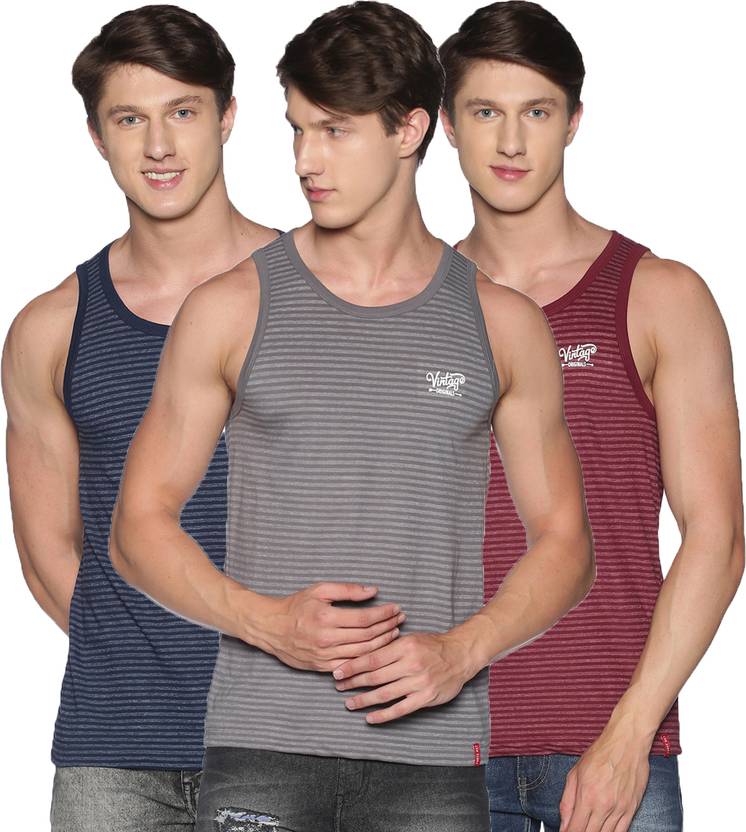 Made with Premium Combed Cotton Rich fabric, This striped tank top is stitched to perfection for summer days, This stylish tank top is a summer staple for every wardrobe, Team it with a pair of denims and loafers to up the style game, Label free for all day comfort