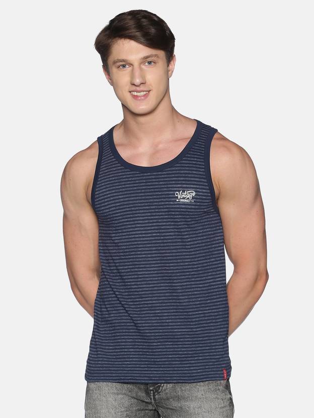 Made with Premium Combed Cotton Rich fabric, This striped tank top is stitched to perfection for summer days, This stylish tank top is a summer staple for every wardrobe, Team it with a pair of denims and loafers to up the style game, Label free for all day comfort
