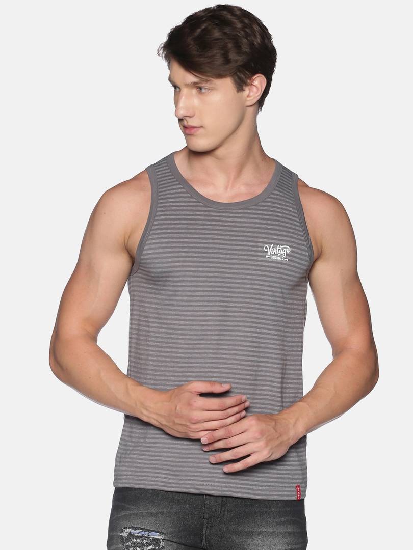 Made with Premium Combed Cotton Rich fabric, This striped tank top is stitched to perfection for summer days, This stylish tank top is a summer staple for every wardrobe, Team it with a pair of denims and loafers to up the style game, Label free for all day comfort