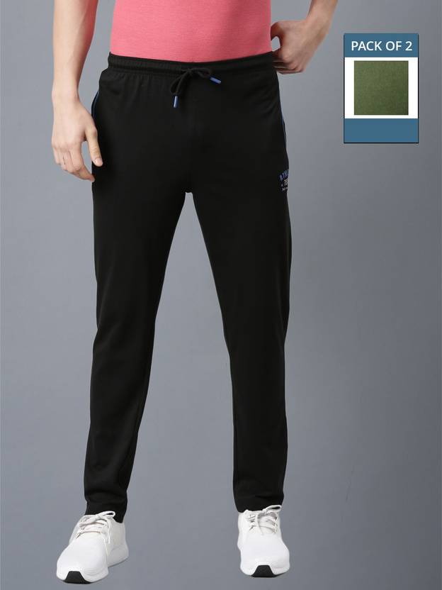 Pack of 2 Men Solid Black, Olive Track Pants