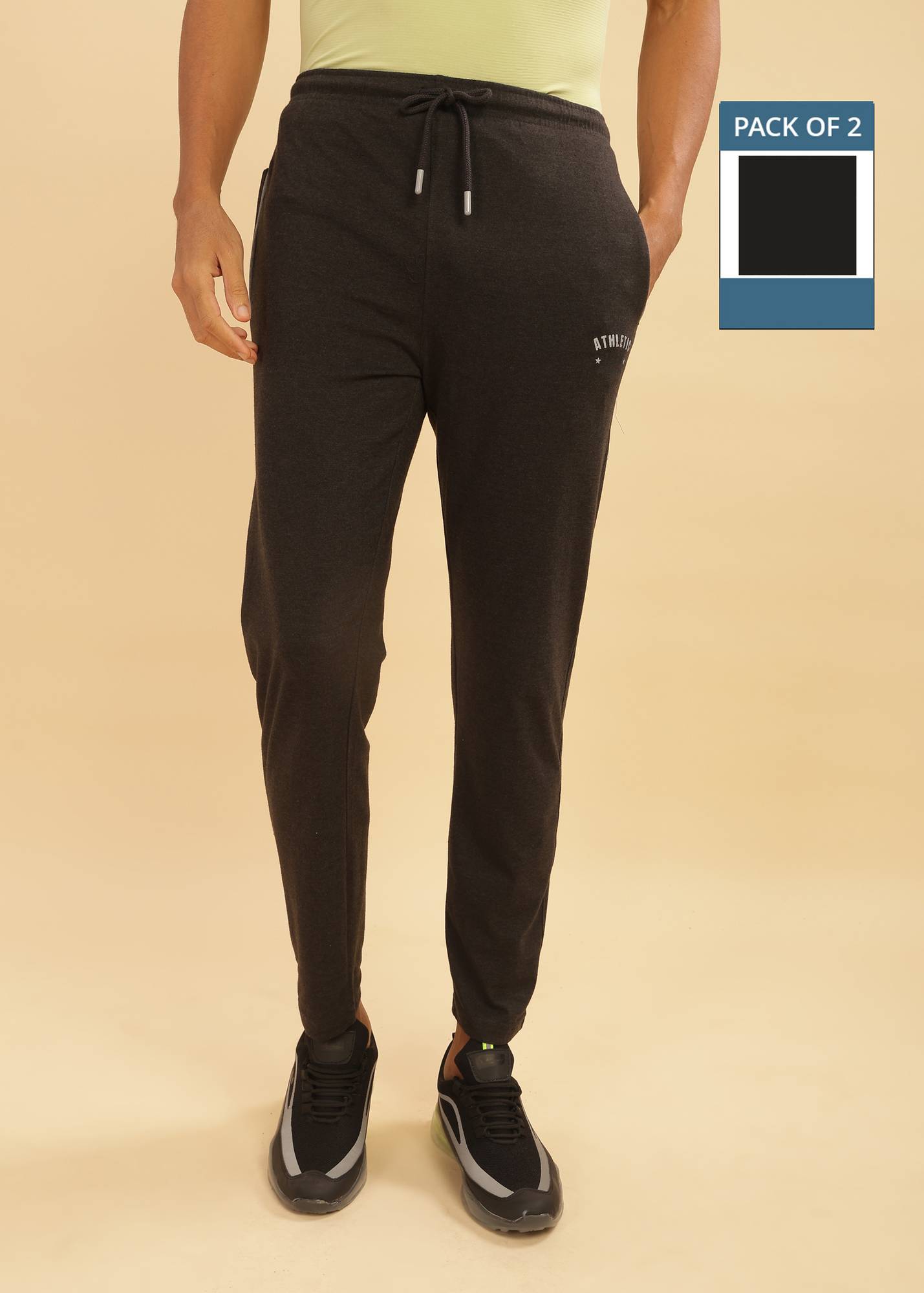 Pack of 2 Men Solid Blue, Olive Track Pants