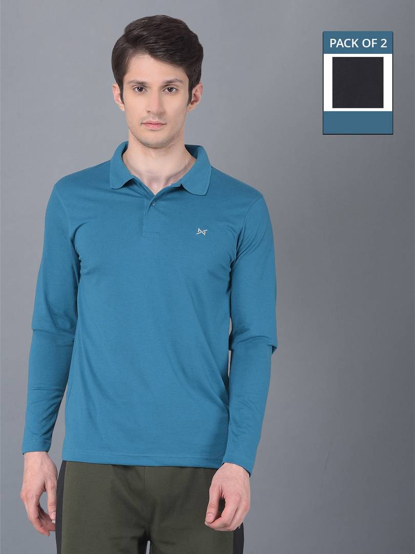 Force NXT Solid Men Polo Neck Blue, Black T-Shirt