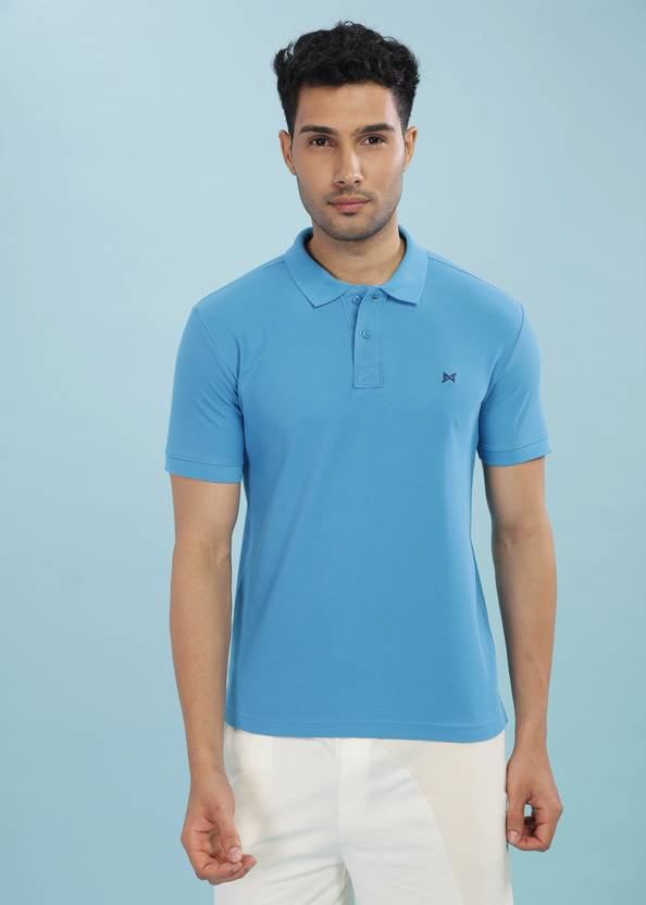 Force NXT Solid Men Polo Neck Light Blue T-Shirt