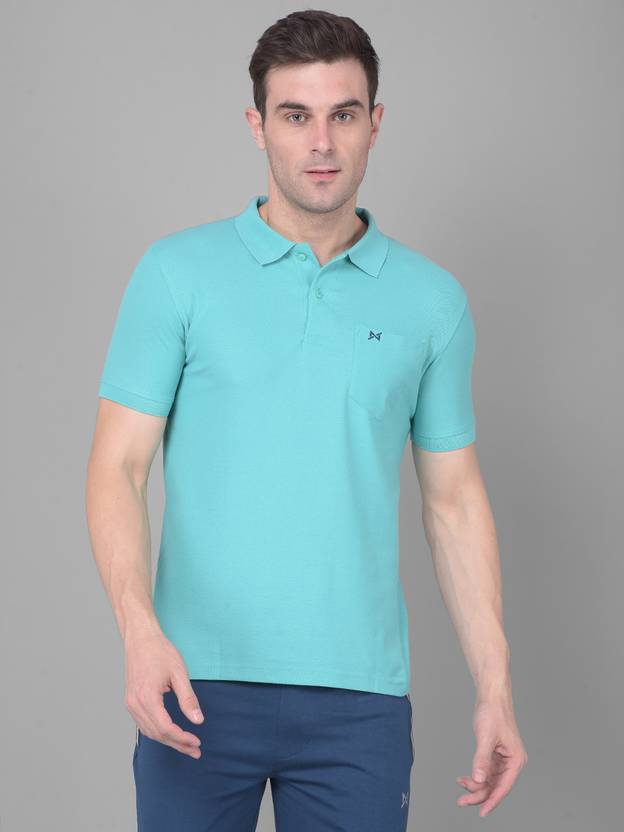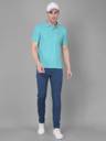 Men Solid Polo Neck Pure Cotton Blue T-Shirt