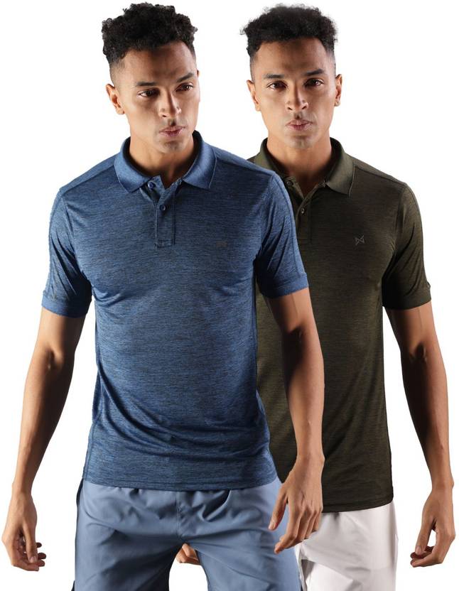 Force NXT Pack of 2 Men Solid Polo Neck Polyester Multicolor T-Shirt