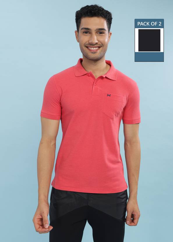 Force NXT Pack of 2 Men Solid Polo Neck Pure Cotton Multicolor T-Shirt