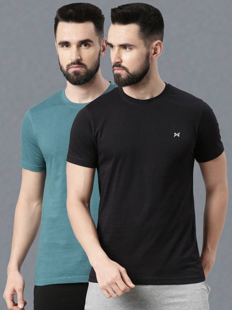Force NXT Solid Men Round Neck Black, Green T-Shirt