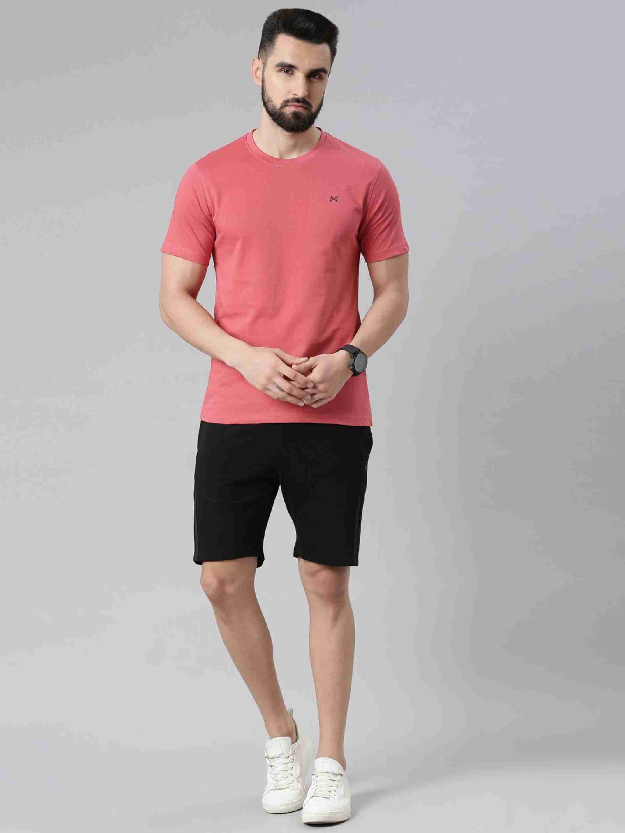 Pack of 2 Men Solid Round Neck Pure Cotton Pink, Blue T-Shirt