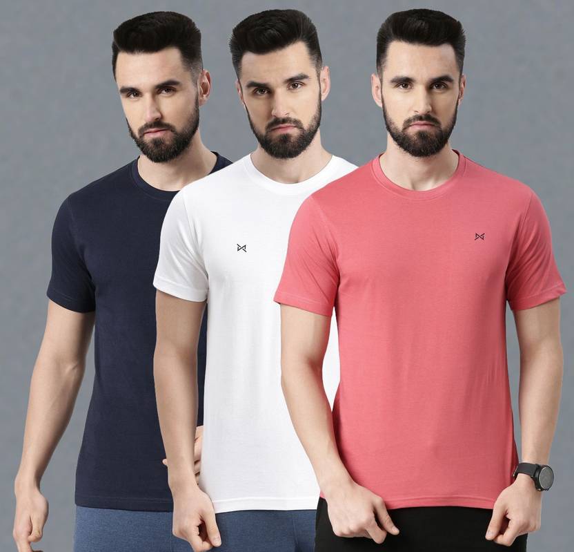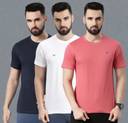 Force NXT Solid Men Round Neck Pink, White, Navy Blue T-Shirt