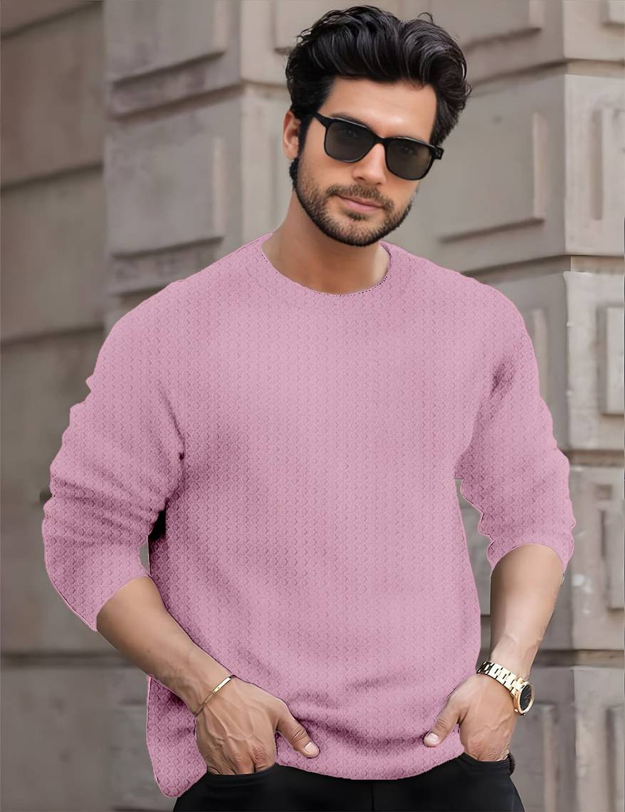 Force Solid Men Round Neck Pink T-Shirt