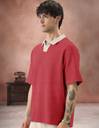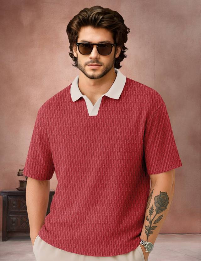 Force Solid, Self Design Men Polo Neck Red T-Shirt