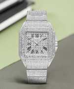 Bling crystal paved dial, roman numeral marker with central stick shape minute/hour hands, always keeping the watch fashion and elegant.