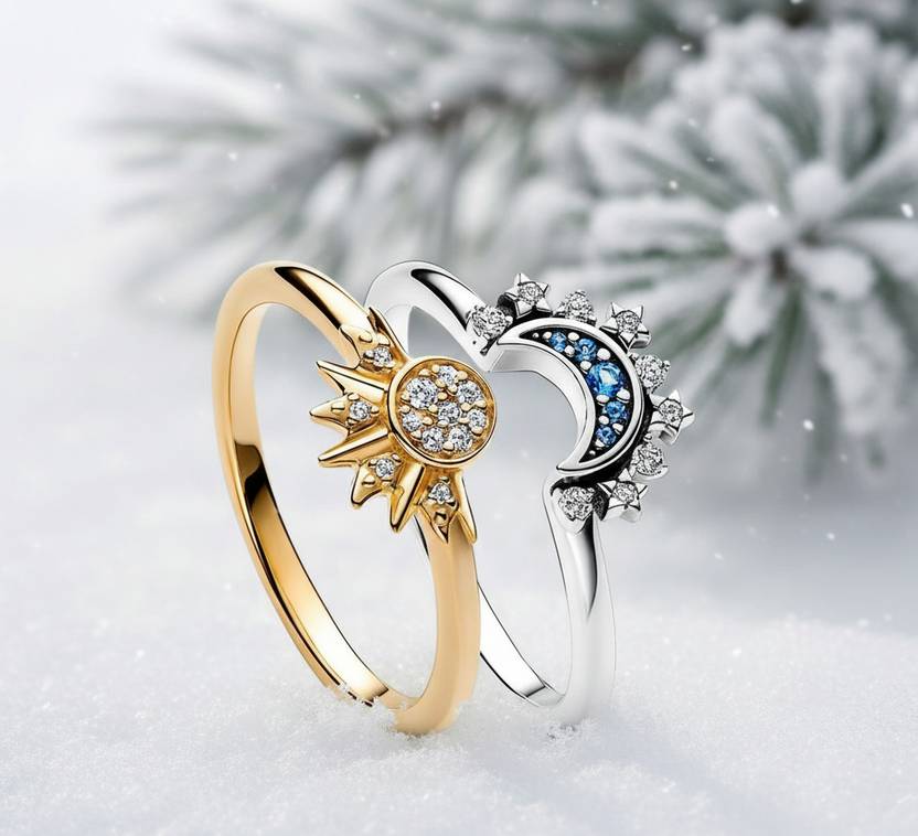Elegant dual-tone Sun & Moon Couple Rings crafted , featuring sparkling cubic stones. The Sun design symbolizes warmth, energy, and new beginnings, while the Moon design represents calmness, love, and eternity. Perfect as a statement ring, promise ring, or gift for special occasions.