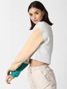 A knit top featuring round neckline, ribbed trim, long sleeves and boxy fit