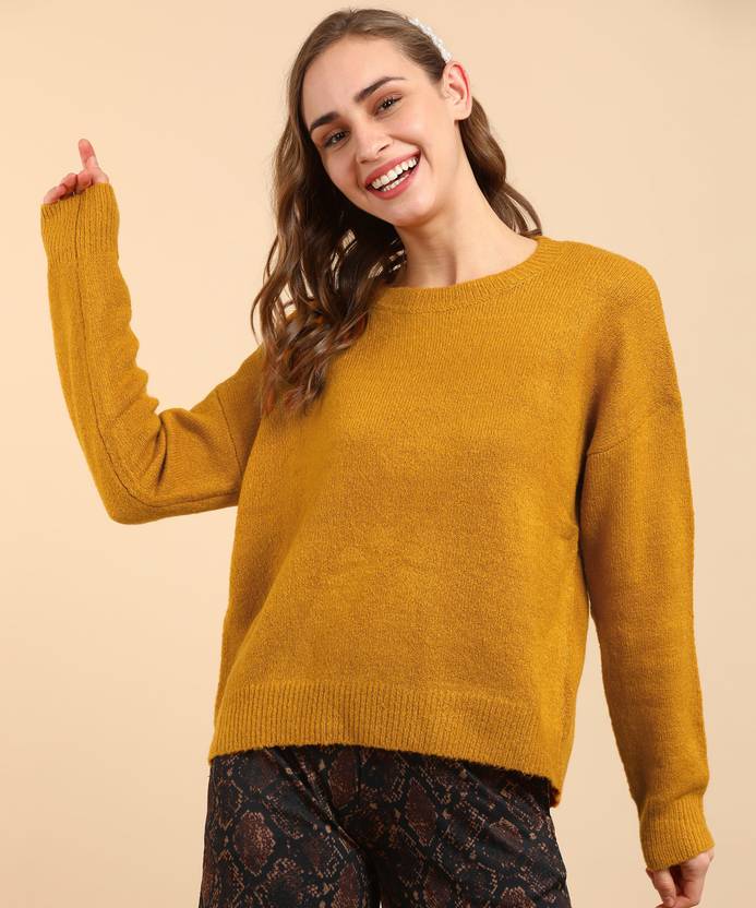 FOREVER 21 Self Design Round Neck Casual Women Yellow Sweater