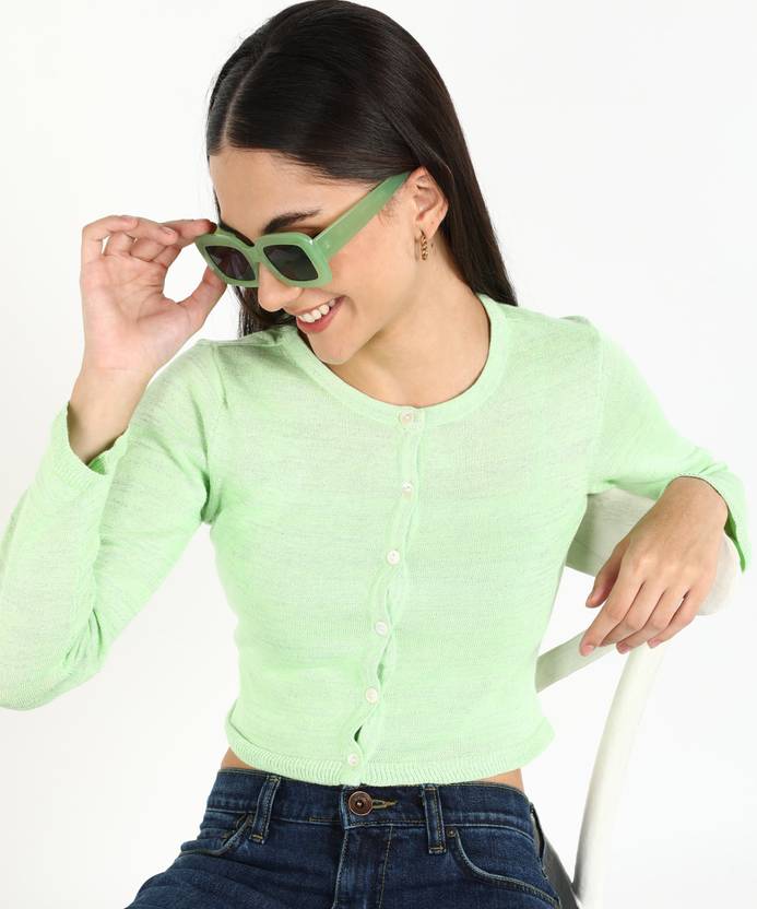 FOREVER 21 Solid Crew Neck Casual Women Green Sweater