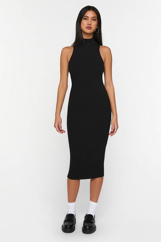 FOREVER 21 Women A-line Black Midi/Calf Length Dress