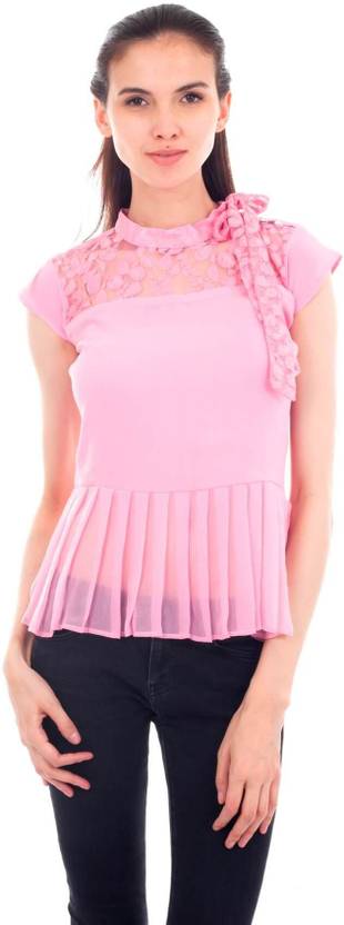 Looks gorgeous in a pretty pink pleated top with a tie up bow collar.