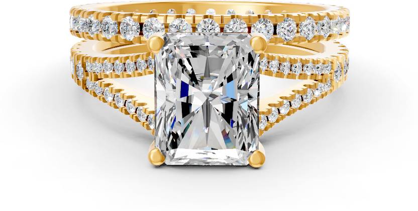 Radiate elegance with this exquisite 3CT Radiant Cut Moissanite Bridal Engagement Ring. Set in luxurious 14K gold plated metal, this ring showcases a stunning radiant-cut moissanite gemstone, boasting exceptional fire and brilliance. The ring's sleek, modern design and impeccable craftsmanship make it a true masterpiece. Perfect for the bride-to-be who desires a luxurious, high-end look, this ring is a symbol of eternal love and commitment. Its unique radiant cut adds an extra touch of sophistication and glamour.
