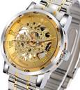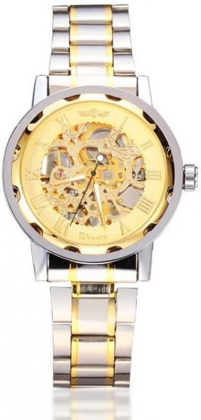 Triangular Silver Shield Automatic Mechanical Watch, the three-dimensional triangle is unique and unforgettable, fully demonstrate your unrestrained and unique personality, Golden skeleton dial You can see each precision part rotate accurately.