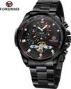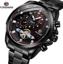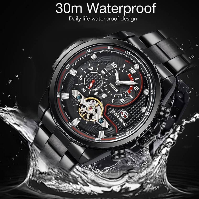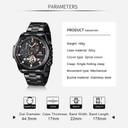 Black Skeleton Tachymeter Automatic Cross See Through Self Winding Wrist Pulse