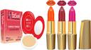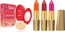 Combo Compact Powder with Primer Effect and Set of 3 Gold Matte Lipsticks (Multicolor-176)