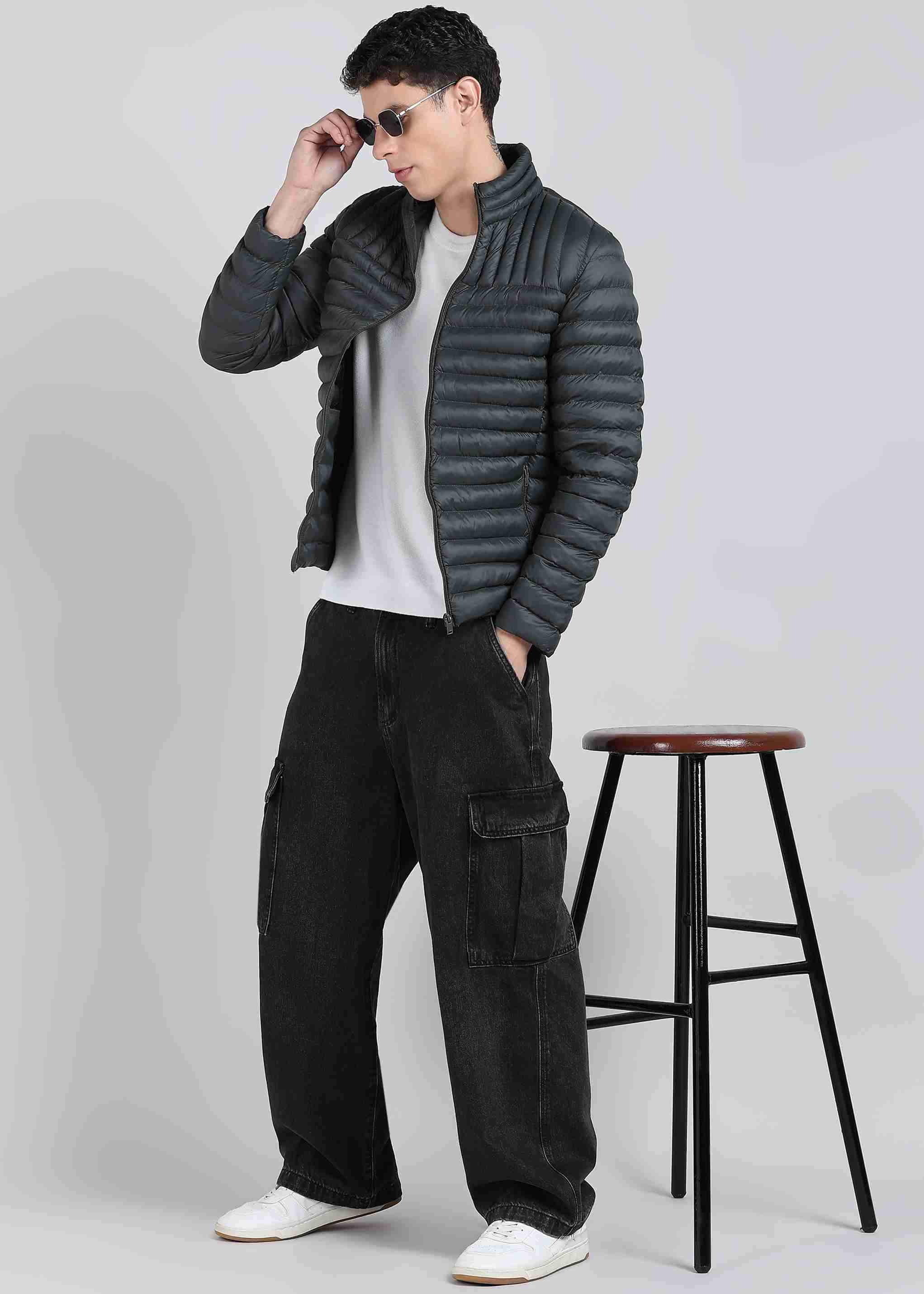 Men Solid Puffer Jacket