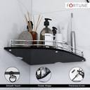 FORTUNE 12 x 12 Inch Flower Black Glass Storage Corner Shelf, Kitchen Shelves(Pack of 2) Glass, Stainless Steel Wall Shelf (Number of Shelves - 2, Black)
