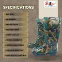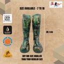 The Fortune Army Print Gumboot are crafted using Polyvinyl Chloride (PVC) and come equipped with a fabric lining to ensure comfortable wear while maintaining the safety characteristics of traditional rubber gumboots. Designed to excel in environments such as orchards, vegetable fields, citrus groves, and agriculture, these boots are outfitted with replaceable economy cushion insoles that provide exceptional daily comfort. These gumboots, suitable for both men and women, hold ISI approval and offer a range of safety features, including resistance to static electricity, slip prevention, puncture and tear resistance, as well as being waterproof, acid-resistant, oil-resistant, and water-resistant.