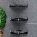 FORTUNE Wall Mount Glass Corner Shelf, Bathroom Shelf (12 x 12 Inch) (Pack of 3) Glass, Stainless Steel Wall Shelf (Number of Shelves - 3, Black)