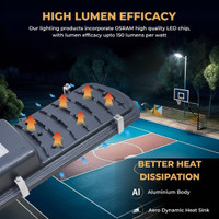 Thanks to the incorporation of high-quality LED chips, this street light provides high lumen efficacy which results in bright, consistent illumination with minimal energy use. The aluminum body offers durable construction while aiding in good heat dissipation. Plus, its aerodynamic heat sink further improves heat management, ensuring that this street light remains cool and operates efficiently even during prolonged use.