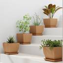 FORWAY 7 inch Square Flower Pots Outdoor Indoor, Planters with Drainage Hole and Tray Plant Container Set (Pack of 5, Plastic)