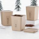 FORWAY Plastic Tea Coffee & Sugar Container - 800 ml (Pack of 3, Light Brown)