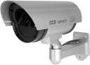 Dummy Security Cameras can be used to augment your existing security system by creating the impression that you have more camera coverage than is actually installed. They can also be used to temporarily replace faulty cameras in case spares are not available while repairs are being performed. This dummy camera is designed to look like a silver, wired IR bullet camera and includes a flashing red LED to indicate camera activity. The square base is suited for mounting on a vertical surface and can be adjusted for the correct camera orientation. The base includes a hole for inserting the dummy data/power cable for that extra, realistic detail. A plastic hood emulates a sun-shield for the dummy camera lens. Requires the use of two AA batteries (not included) for LED activity.