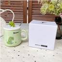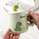 Foschini 300 ML Dinosaur Coffee , Ceramics with Lid Spoon Ceramic Coffee Mug (300 ml)