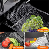 Featuring an inbuilt waterfall shower, this vessel sink offers a unique and luxurious washing experience. The gentle, cascading flow of water not only enhances the aesthetic appeal but also provides a soothing effect during use. This feature is designed to reduce splashing, ensuring a cleaner and more controlled water flow ideal for washing fruits and vegetables. The waterfall shower function also contributes to efficient water use, making it both a stylish and practical addition to your kitchen setup.