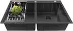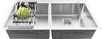 Fossa 37x18x10 Inch Double Bowl With Tap Hole Premium Handmade Kitchen Sink FS-11 Vessel Sink (silver Tap Hole)