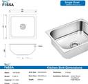 Fossa Stainless Steel Single Bowl Kitchen Sink 18 X 16 X 8 inch with Sink Coupling FMS-01 Vessel Sink (Chrome)