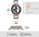 A modern take on the classic racing watch, Autocross redefines sporty style. The classic silver sunray dial with black subeyes contrasts against the stainless steel case and bracelet. With a quartz multi-eye movement tracking a dual time and day of the week, this 42mm watch provides additional functionality for your everyday adventures.