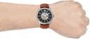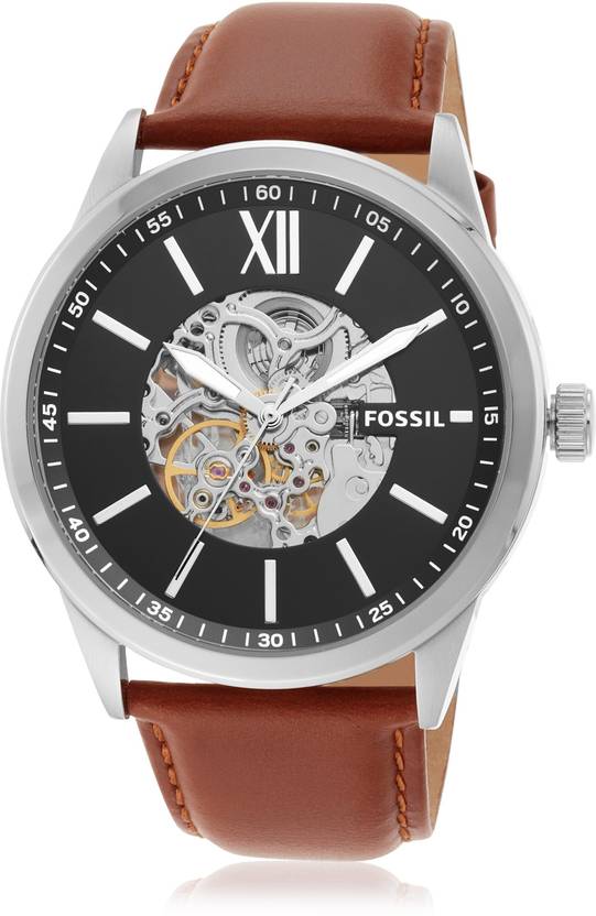 Unique blue dial face perfectly combined with silver plated numbers, silver watch shell and dark brown leather strap full of masculinity. Ending seductive with an expansive watch face. It is the model of Fossil Flynn automatic leather strap BQ2386 leather strap