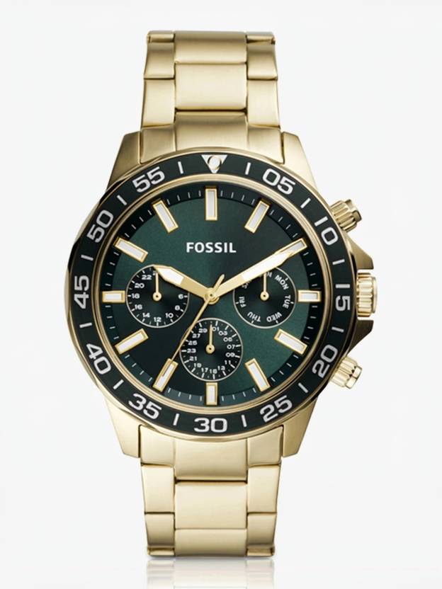 Designed for those who wish to keep track of time with sophistication, this Fossil Bannon Gold Watch offers an unparalleled fusion between style and functionality. This 45mm Bannon features a green sunray dial, multifunction movement and a gold-tone stainless steel bracelet and is designed mindfully for the urbane men of today.