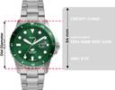 Purposeful design details define our time-honored watch collection, Fossil Blue Dive. This stainless steel dive-style timepiece is expertly crafted with a 3-link stainless steel bracelet, geometric indices and a unidirectional rotating topring. Tested to 100 meters of water resistance. *Not ISO certified.