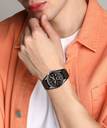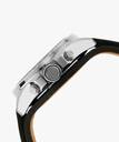 The strap is made from quality leather and features white stitching that gives the strap a stand-out effect. The strap is finished off with leather loops and a silver-toned buckle clasp that ensures the watch remains securely tied to your wrist.