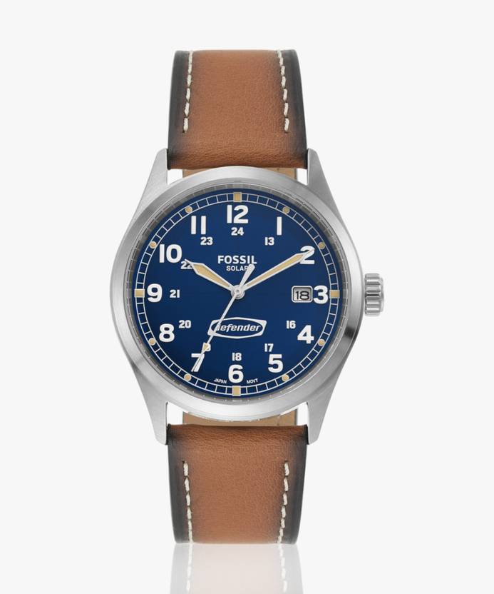 This 40mm Defender features a blue matte dial, solar-powered movement and luggage eco leather strap.